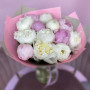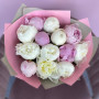 На фото букет из 13 белых и розовых пионов. В составе: пион 13 шт, крафт-бумага 1 шт, атласная лента 1 шт, . Все цветы свежие и ароматные, букет красиво оформлен и отлично подходит для подарка. Доступна доставка цветов или самовывоз.