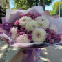 Букет из пионовидных роз, альстромерии и хризантем